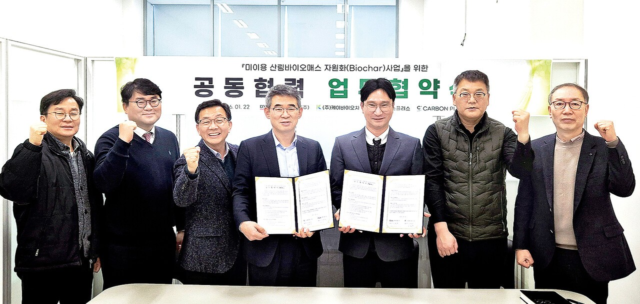 한편, 바이오차의 생산 유통 판매 등 시장확장 파트너인 케이바이오차 김명훈 대표는 “이번 협약은 단순한 사업영역을 넘어서, 설비 연구 시장교섭력의 전문기업들이 손잡은 만큼, 미이용산림자원의 해결과 현 정부의 농업분야 탄소중립, 기후위기대응 양질의 바이오차 생산으로 친환경 저탄소농업의 양적 질적 상승효과가 지대할 것”이라고 전망했다.